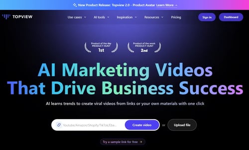 Topview.AI is an innovative online AI video editing tool that converts product links, media clips or photos into marketing videos with viral potential in one click.